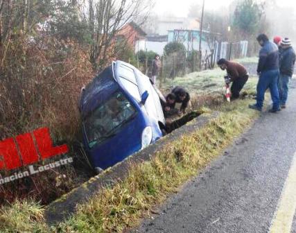 El voluntario de bomberos, indicó que aparentemente producto de la helada que había sobre la carpeta asfáltica, la conductora del Mitsubishi – Montero, perdió el control del móvil, cayendo a una zanga.