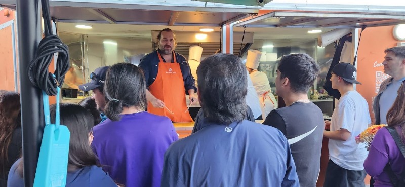 SalmonChile estuvo presente con un foodtruck donde Pucón Chef preparó, entre otros platos, tacos, tártaros, ensaladas, cremas y ceviches para degustación gratuita de los asistentes. Además, el reconocido chef nacional Mikel Zulueta, miembro del capítulo chileno Les Toques Blanches -agrupación con la que SalmonChile mantiene un convenio para entregar becas de gastronomía a alumnos de liceos técnicos de la especialidad- realizó clases magistrales utilizando el salmón como producto base. Junto a ellos, destacados chefs argentinos realizaron innovadoras preparaciones al fuego, captando la atención del público presente. Las empresas socias y colaboradorasCosecha del Mar, Marine Farm y Sudmaris aportaron con sus productos, proporcionando salmón y choritos de alta calidad para las diversas preparaciones culinarias.
