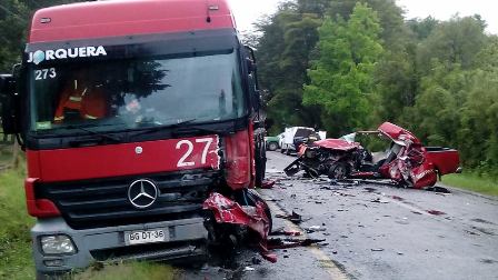 Pasadas las 02 de la madrugada de esta sábado 21 de noviembre ocurrió una colisión en el kilómetro 4 de la ruta Villarrica a Licán Ray. En el lugar chocaron de forma frontal una camioneta doble cabina, marca Nissan, modelo Navara que se desplazaba en dirección a Villarrica con un camión marca Mercedes Benz que lo hacía en sentido contrario.