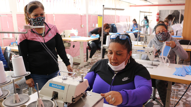 En el taller del penal, en medio de máquinas de coser y telas especializadas de uso quirúrgico, 13 mujeres se mantienen sin parar trabajando en la confección de los elementos de protección personal que serán utilizados por el personal de salud en la atención a usuarios de los distintos dispositivos de la red asistencial pública, una labor que llena de orgullo a Sandra Vásquez, una de las mujeres.