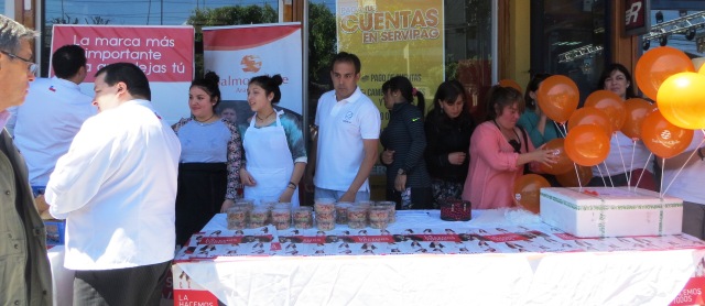 Finalmente, en Pucón se instaló un stand, con “Don Salomón” como anfitrión, donde se ofreció ceviche y sándwich en base a salmón en la entrada del Banco de Chile para incentivar las donaciones, preparados por la agrupación Pucón Chef.