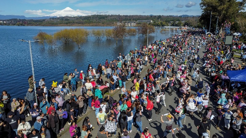 Miles de espectadores llegaron este sábado a la Costanera de Villarrica para participar de la Segunda Versión de la “Cueca Más Larga de Chile”, que se extendió por casi seis horas en un tramo de más de un kilómetro, junto al lago, hasta donde también llegaron el Gobernador de La Araucanía, Luciano Rivas; el Alcalde de Villarrica, Germán Vergara; y el Core, Federico Figueroa, todos quienes destacaron lo vigente que está el Baile Nacional, comprobado con eventos tan masivos.