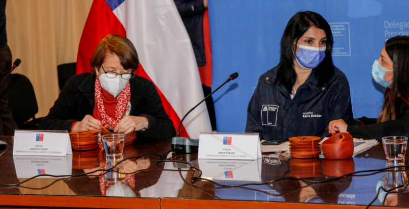 Por su parte la Ministra de las Culturas, las Artes y el Patrimonio, Consuelo Valdés, dijo que en el campo de la cultura, son dos áreas las que están fortaleciendo con otras carteras. Por un lado, todos los programas del ministerio, en la revitalización de las lenguas de los pueblo originarios, ya que el lenguaje es el contenedor de la cultura, ahí está todo, la visión del mundo, la relación con la naturaleza, la creencia, la cosmología, las relaciones sociales en fin; de manera que es muy importante seguir con muchos programas que tenemos con las comunidades en La Araucanía y en la provincia de Arauco, especialmente con énfasis en los niños, en la infancia. Y por otro lado, el fortalecimiento de los museos, que tienen contenido con los pueblos originarios, por lo que vamos a seguir con los programas de mejoramiento integral de los museos que son parte del patrimonio y la restitución de bienes culturales que están en el extranjero, todo esto enriquece a las rutas patrimoniales de nuestro país”.